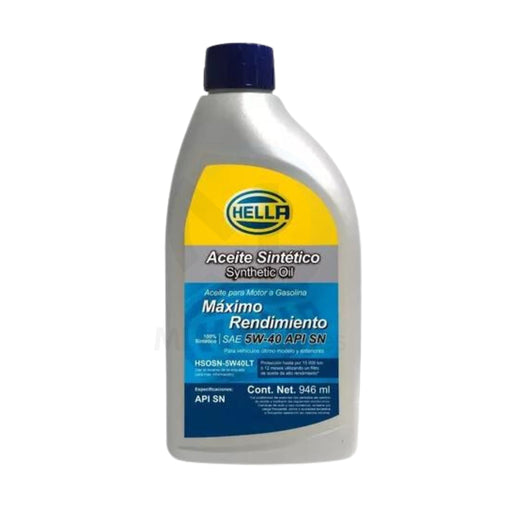 Aceite Sintético 5W40, marca Hella, 946 ml
