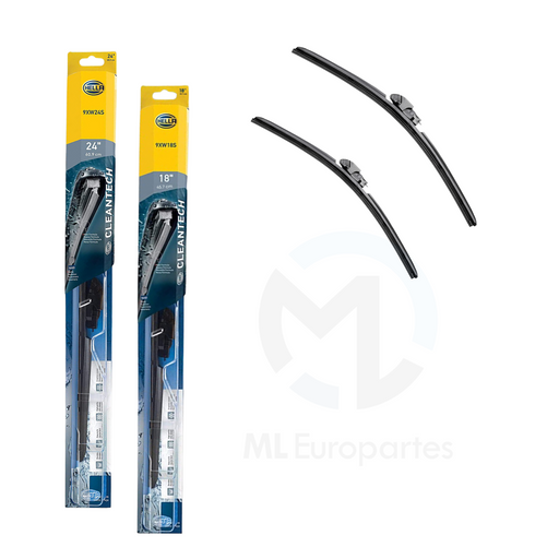 Hella2 piezas disponiblesPlumas limpiaparabrisas delanteras marca Hella, Medidas 24" y 18" (pulgadas), tipo Cleantech, con hojas de goma recubiertas de grafito. Contiene ad...